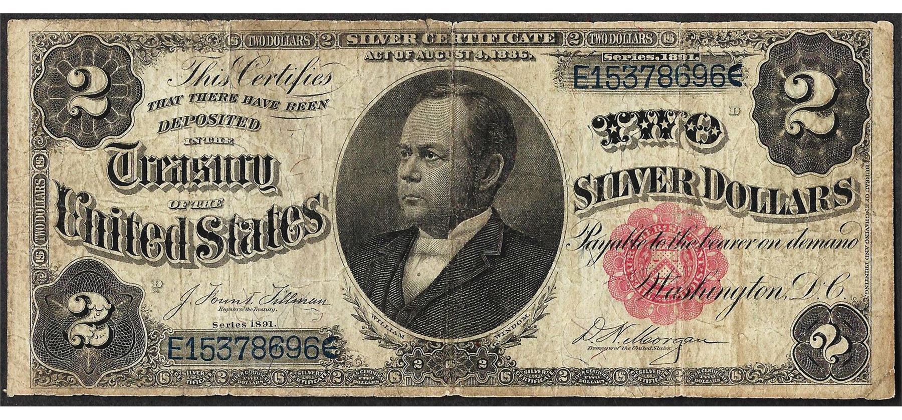 One 1891 $2 Windom Silver Certificate Note.