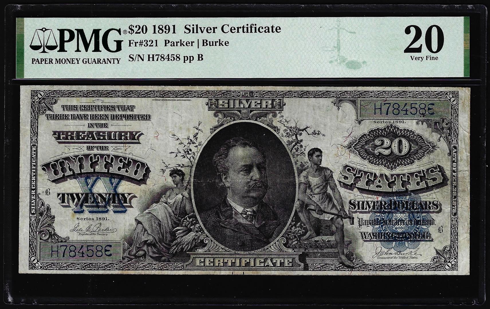 One 1891 $20 Silver Certificate Note Fr.321 PMG Very Fine 20. PMG Certified.