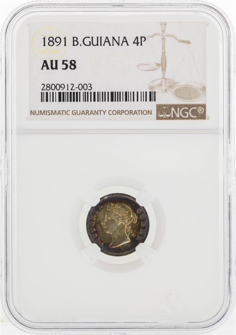 One 1891 British Guiana 4 Pence Silver Coin NGC AU58. NGC Certified.