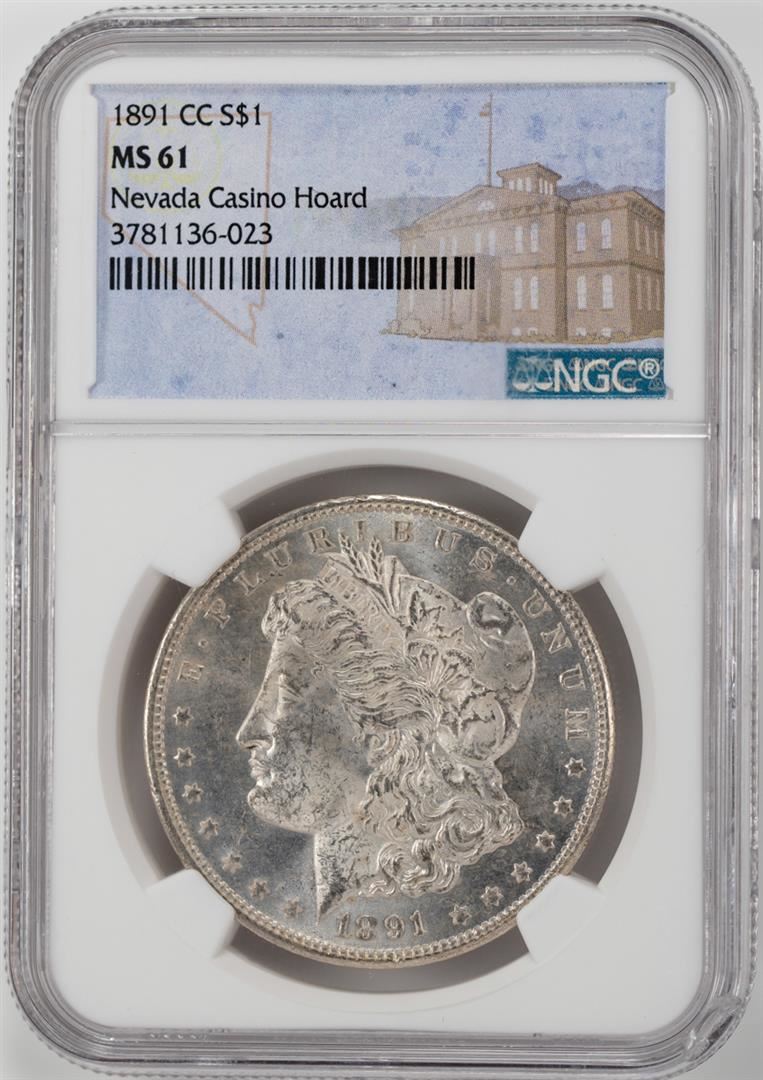 One 1891-CC $1 Morgan Silver Dollar Coin NGC MS61. NGC Certified.