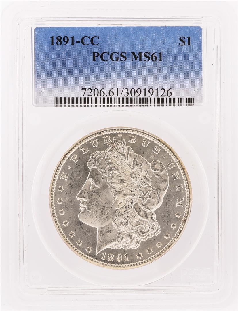 One 1891-CC $1 Morgan Silver Dollar Coin PCGS MS61. PCGS Graded.
