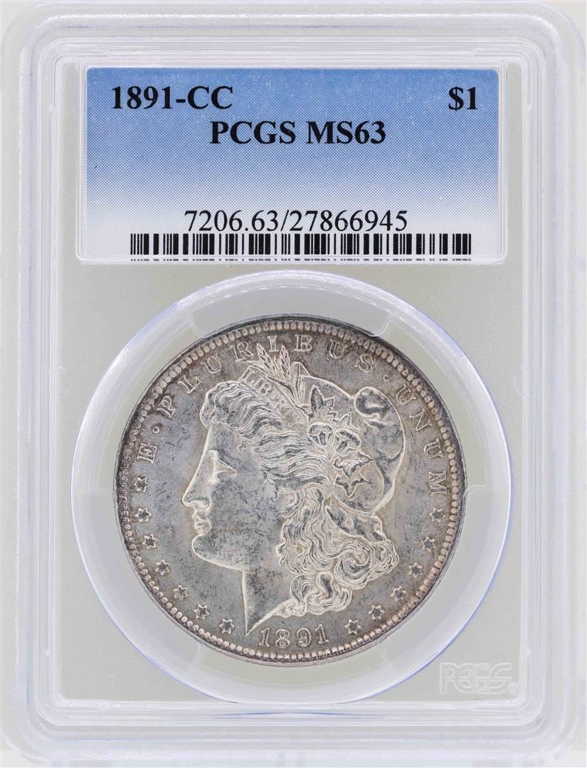 One 1891-CC $1 Morgan Silver Dollar Coin PCGS MS63. PCGS Graded.