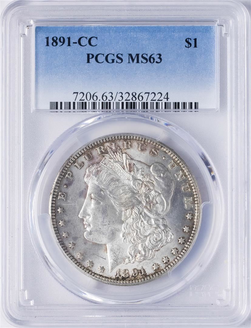 One 1891-CC $1 Morgan Silver Dollar Coin PCGS MS63. PCGS Graded.