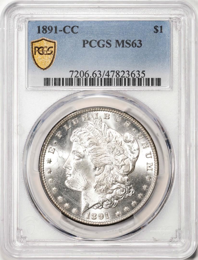 One 1891-CC $1 Morgan Silver Dollar Coin PCGS MS63. PCGS Graded.