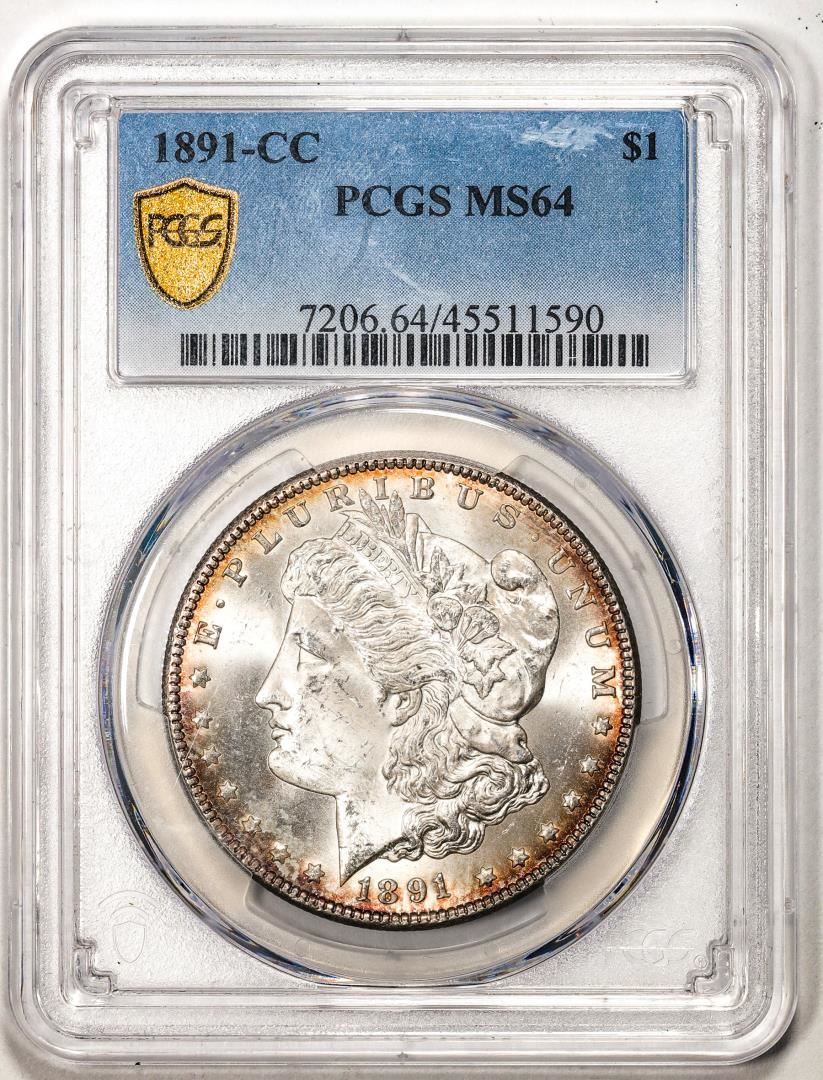 One 1891-CC $1 Morgan Silver Dollar Coin PCGS MS64 Nice Toning. PCGS Graded.