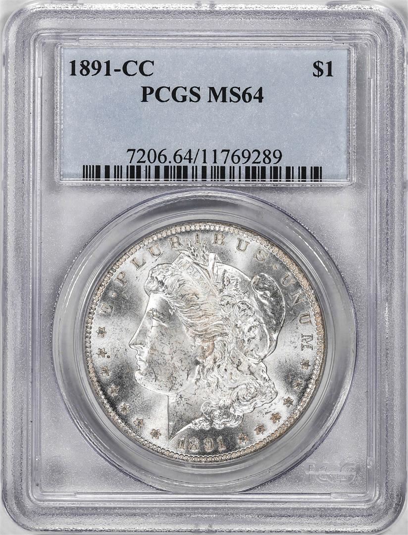 One 1891-CC $1 Morgan Silver Dollar Coin PCGS MS64. PCGS Graded.