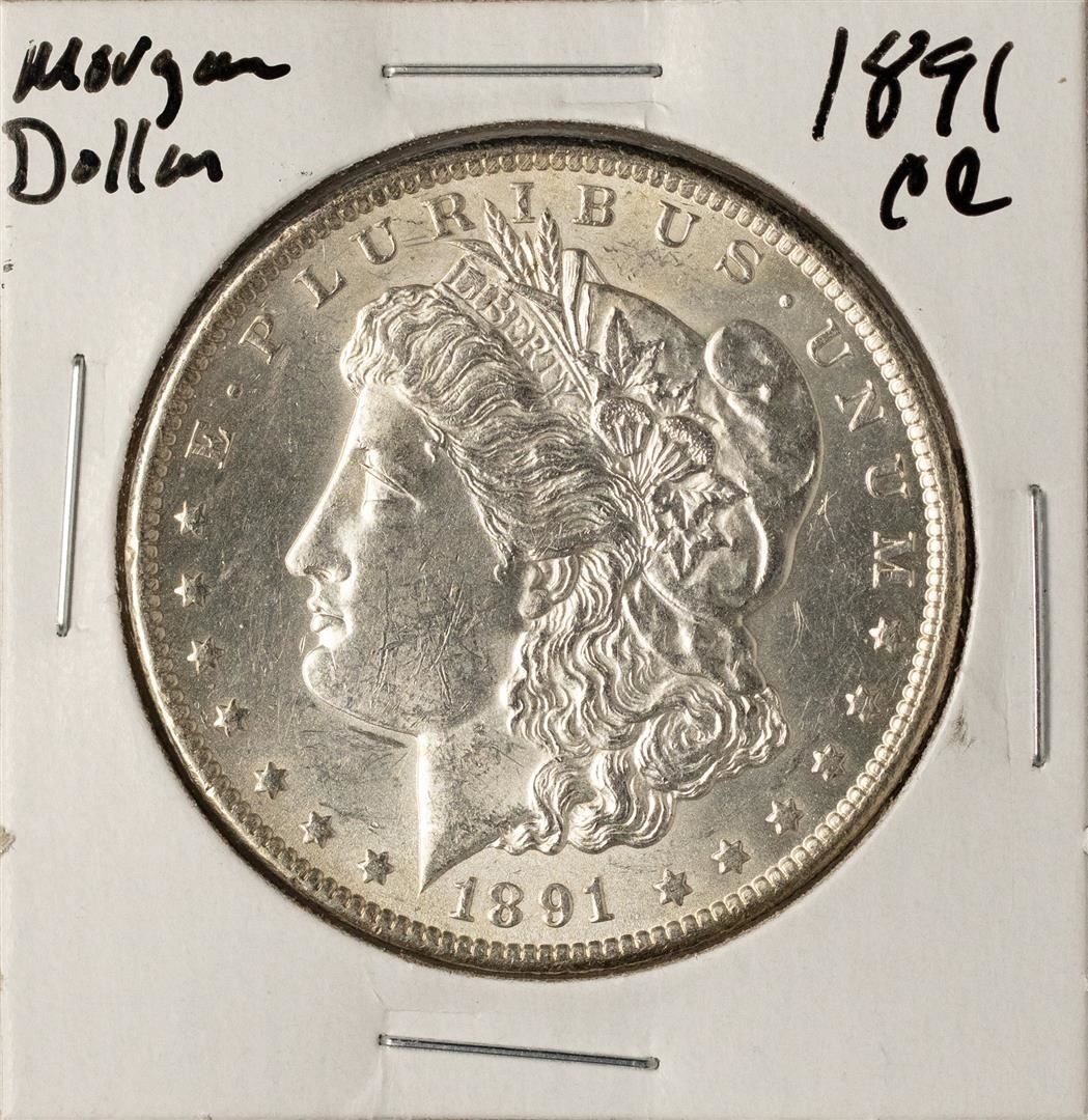One 1891-CC $1 Morgan Silver Dollar Coin.