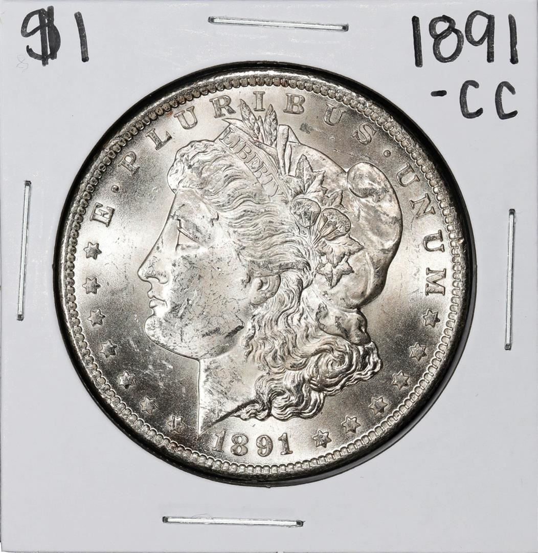 One 1891-CC $1 Morgan Silver Dollar Coin.