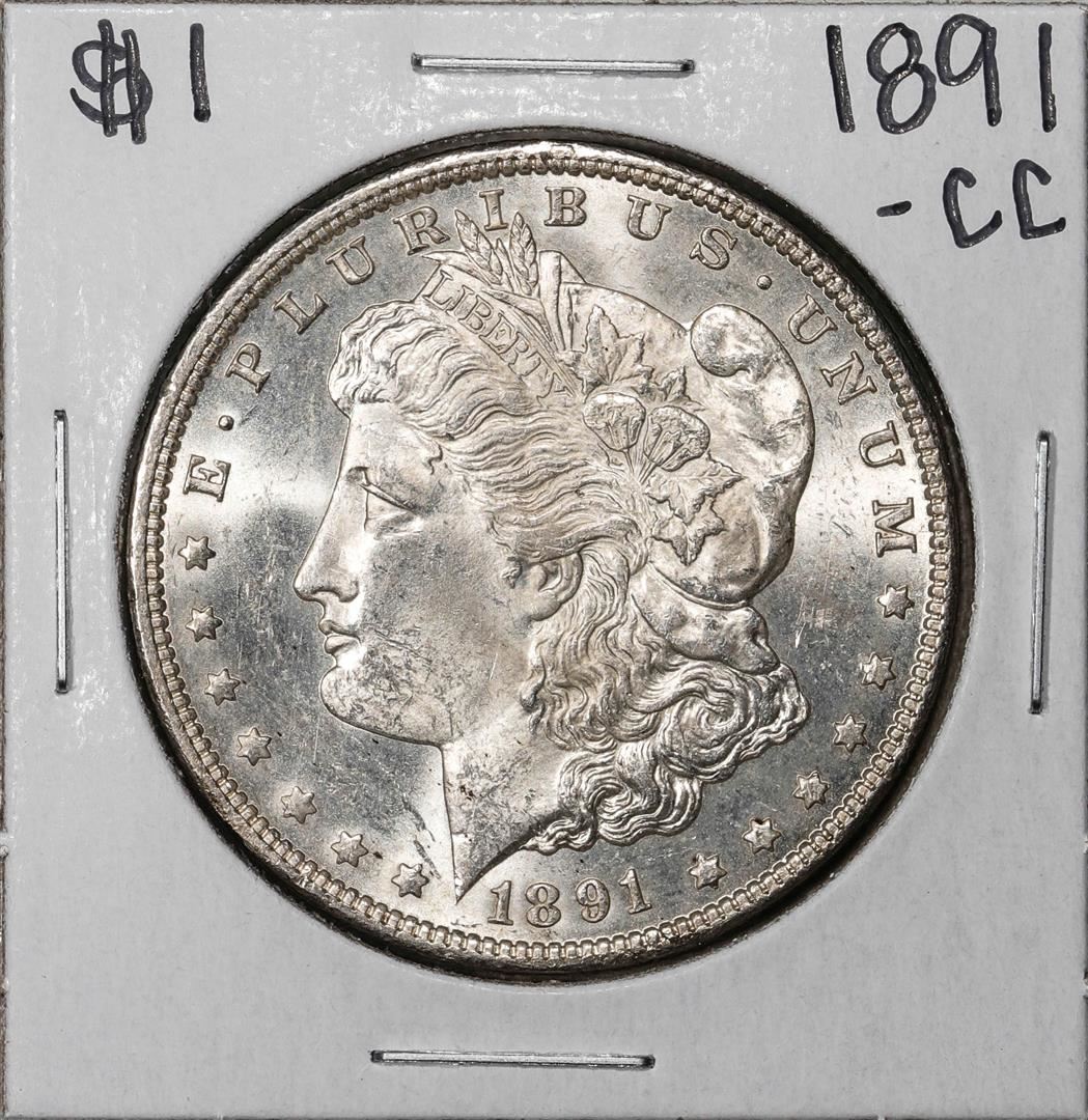 One 1891-CC $1 Morgan Silver Dollar Coin.