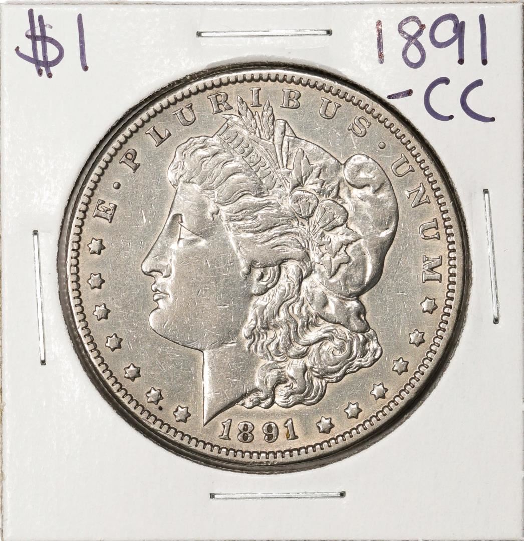One 1891-CC $1 Morgan Silver Dollar Coin.