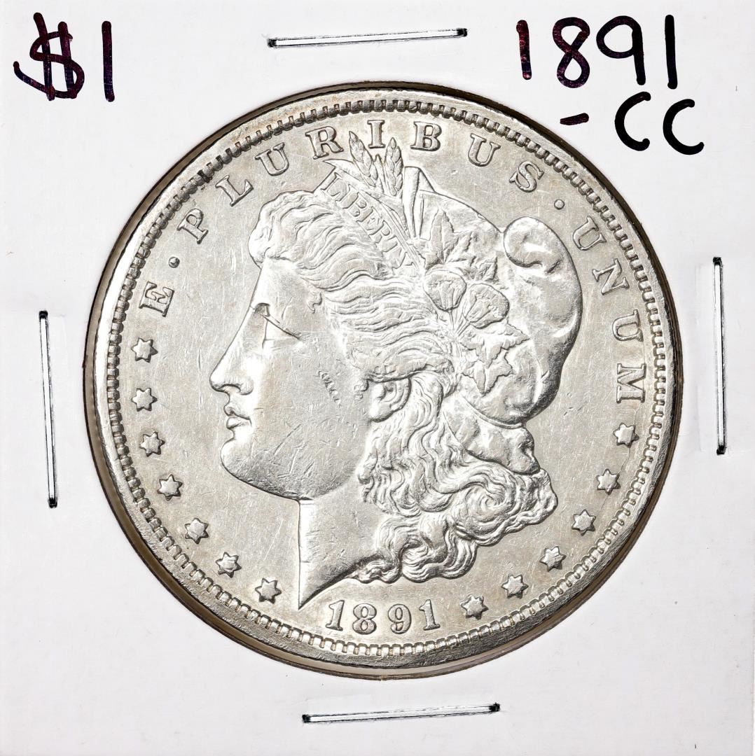 One 1891-CC $1 Morgan Silver Dollar Coin.