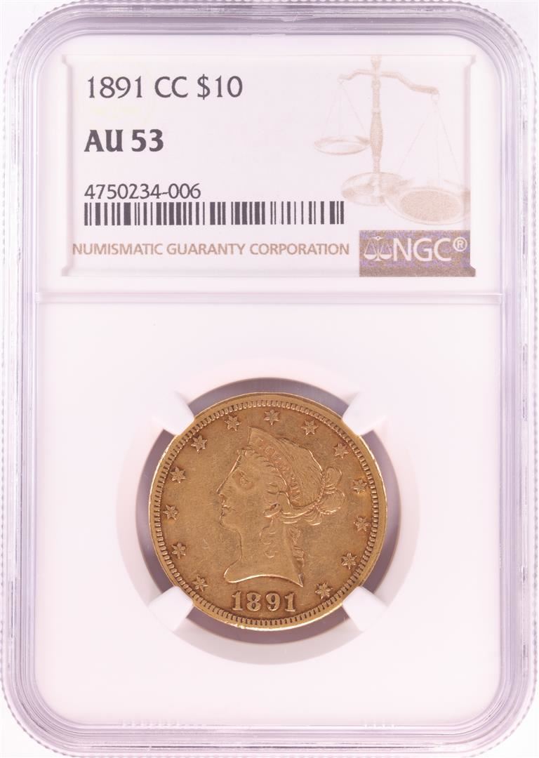 One 1891-CC $10 Liberty Head Eagle Gold Coin NGC AU53. NGC Certified.