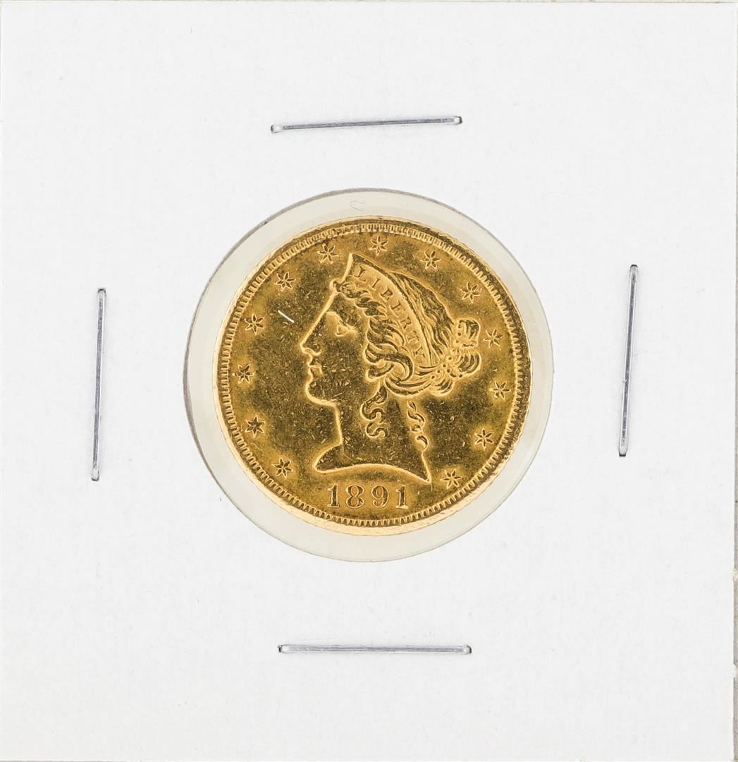 One 1891-CC $5 Liberty Head Half Eagle Gold Coin.