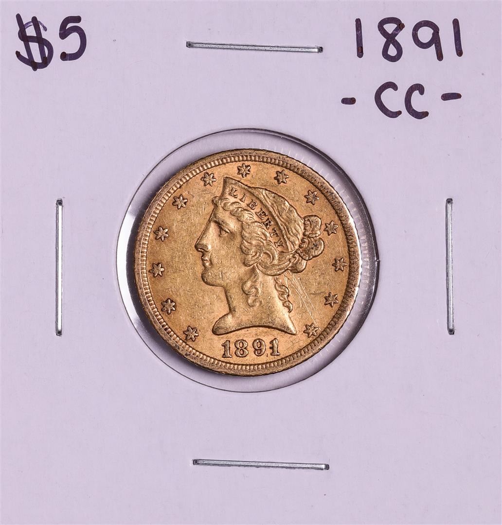 One 1891-CC $5 Liberty Head Half Eagle Gold Coin.