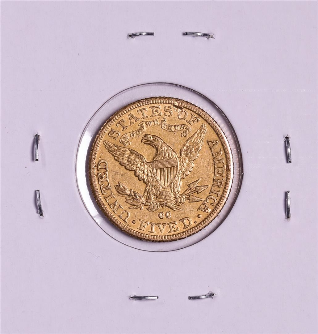 One 1891-CC $5 Liberty Head Half Eagle Gold Coin.