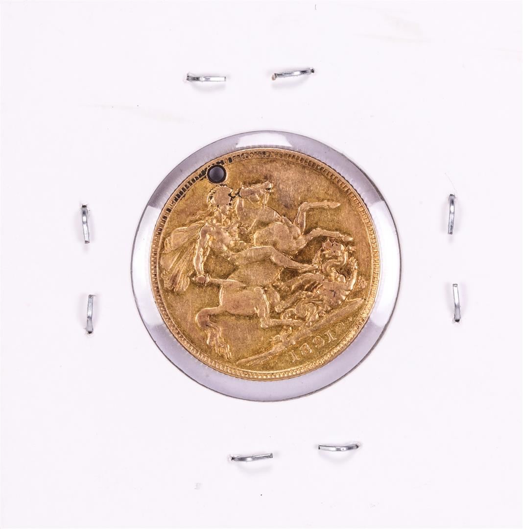 One 1891 Gold Sovereign Love Token Coin Holed.
