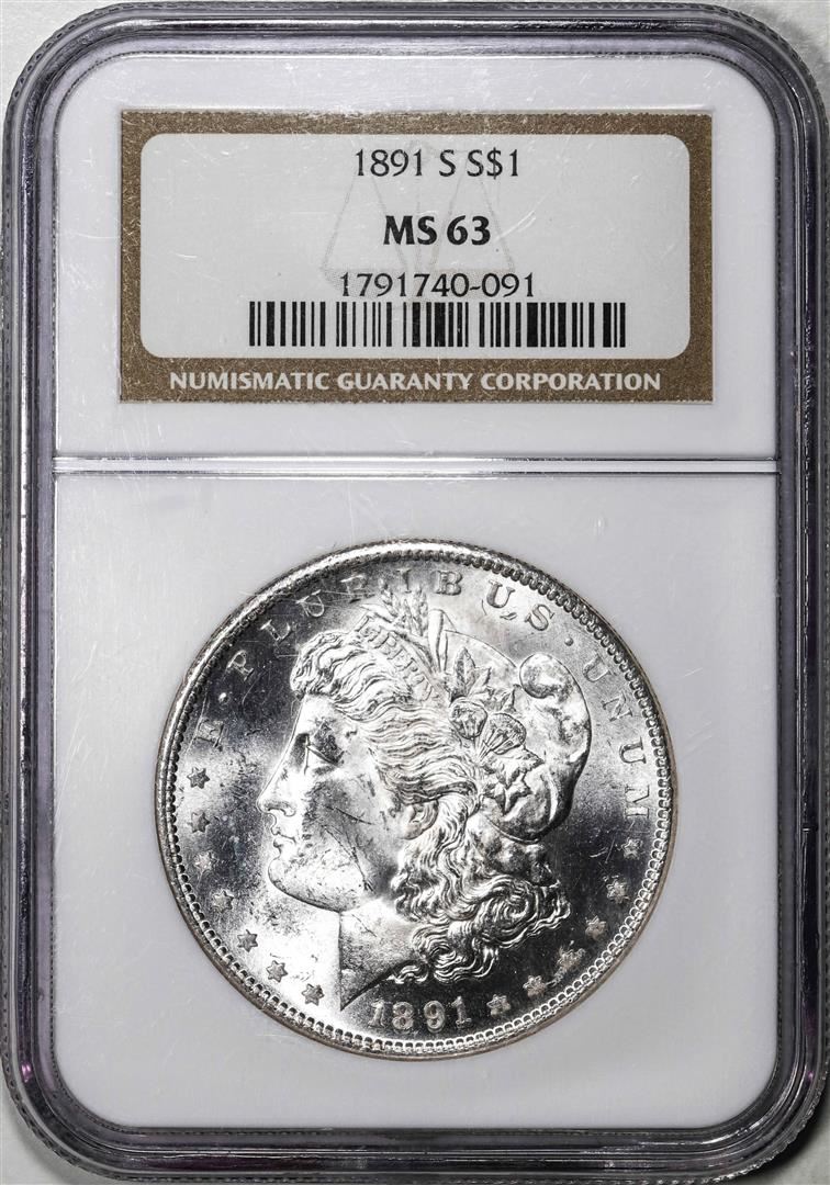 One 1891-S $1 Morgan Silver Dollar Coin NGC MS63. NGC Certified.
