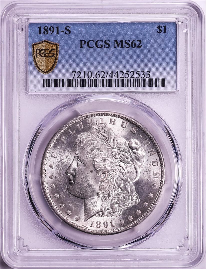 One 1891-S $1 Morgan Silver Dollar Coin PCGS MS62. PCGS Graded.