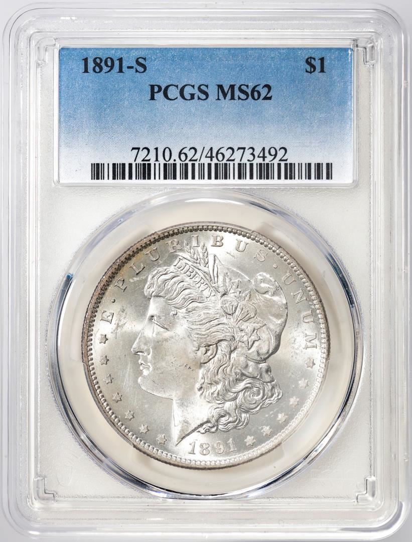One 1891-S $1 Morgan Silver Dollar Coin PCGS MS62. PCGS Graded.