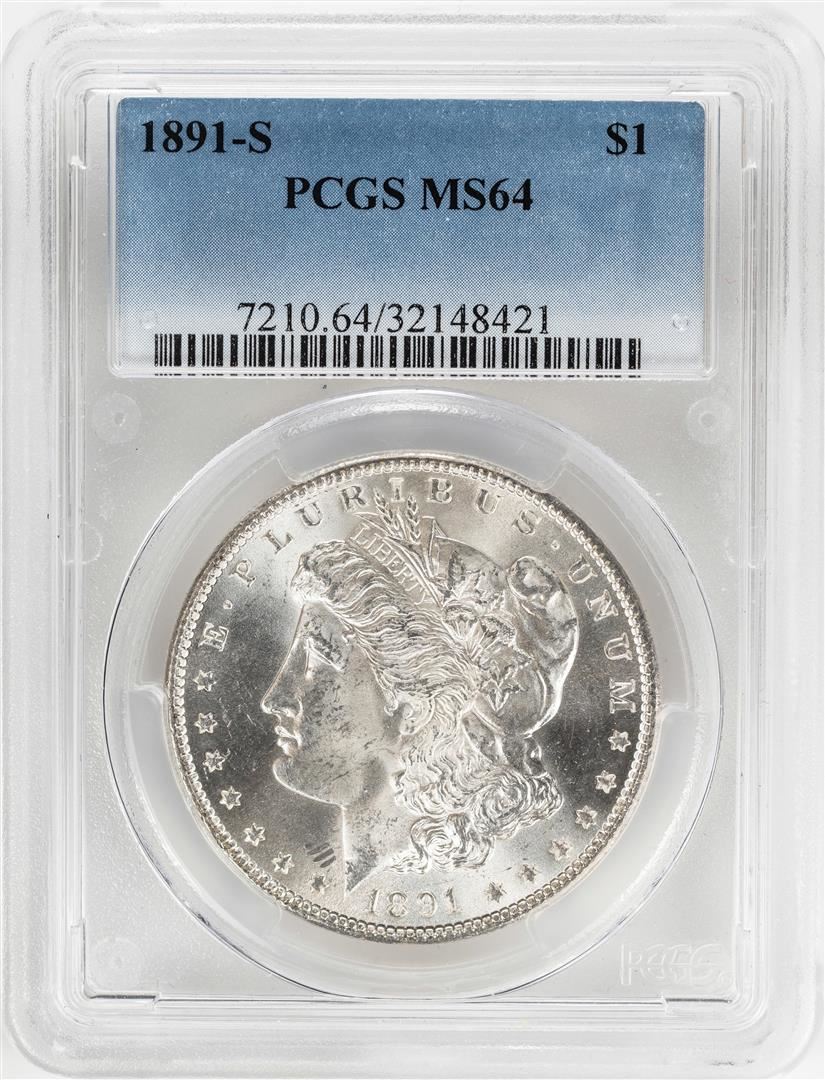 One 1891-S $1 Morgan Silver Dollar Coin PCGS MS64. PCGS Graded.
