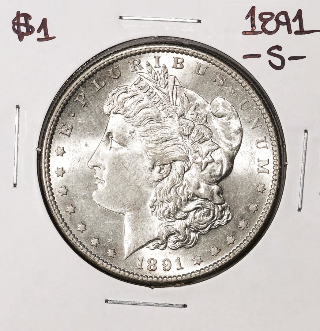 One 1891-S $1 Morgan Silver Dollar Coin.