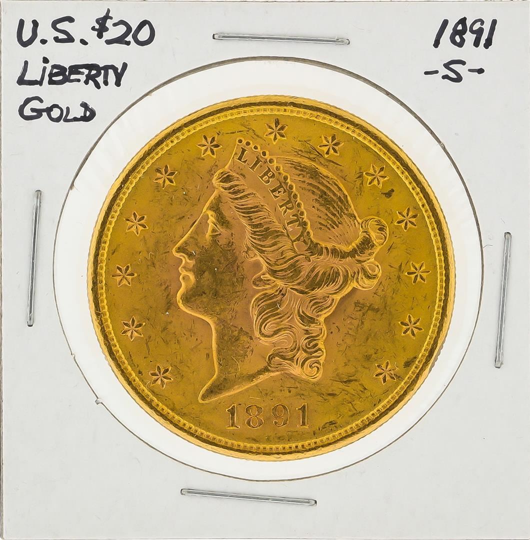 One 1891-S $20 Liberty Head Double Eagle Gold Coin.