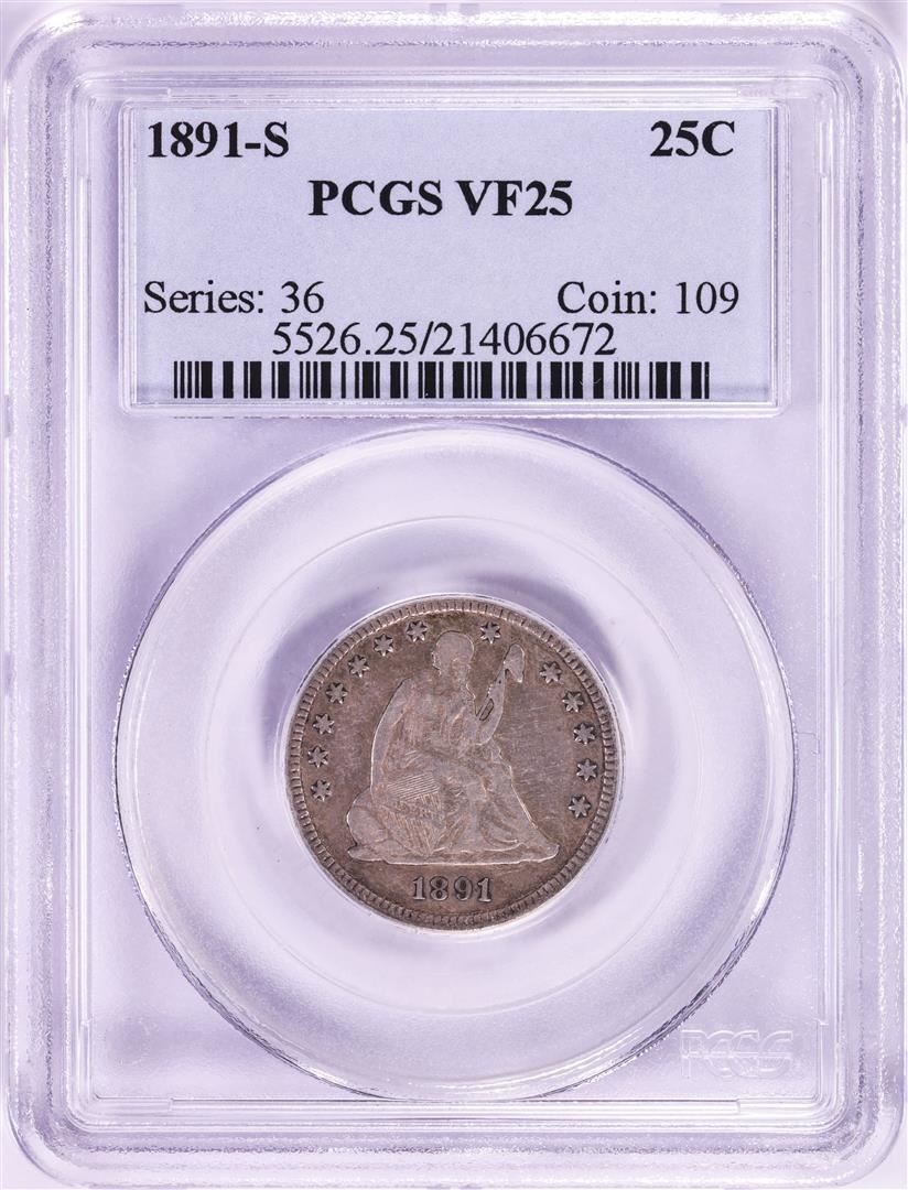 One 1891-S Seated Liberty Quarter Coin PCGS VF25. PCGS Graded.