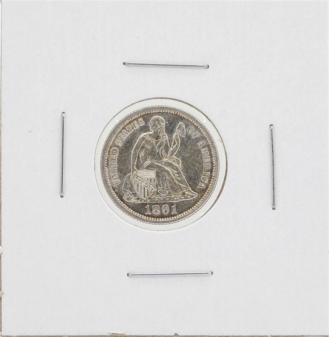 One 1891 Seated Dime Coin.