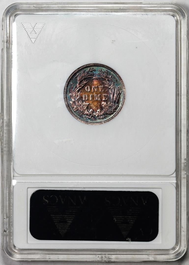 One 1891 Seated Liberty Dime Coin ANACS MS64 Amazing Toning Old Soap Box Holder. ANACS Certified.