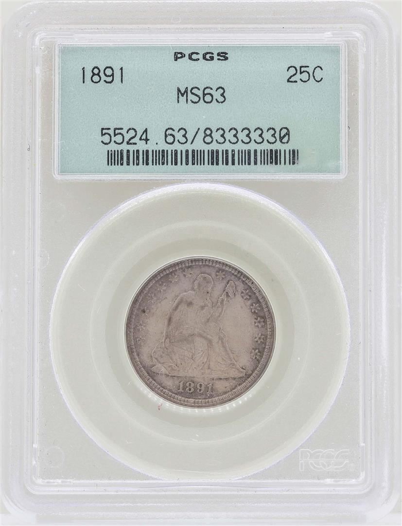 One 1891 Seated Liberty Quarter Coin PCGS MS63. PCGS Graded.