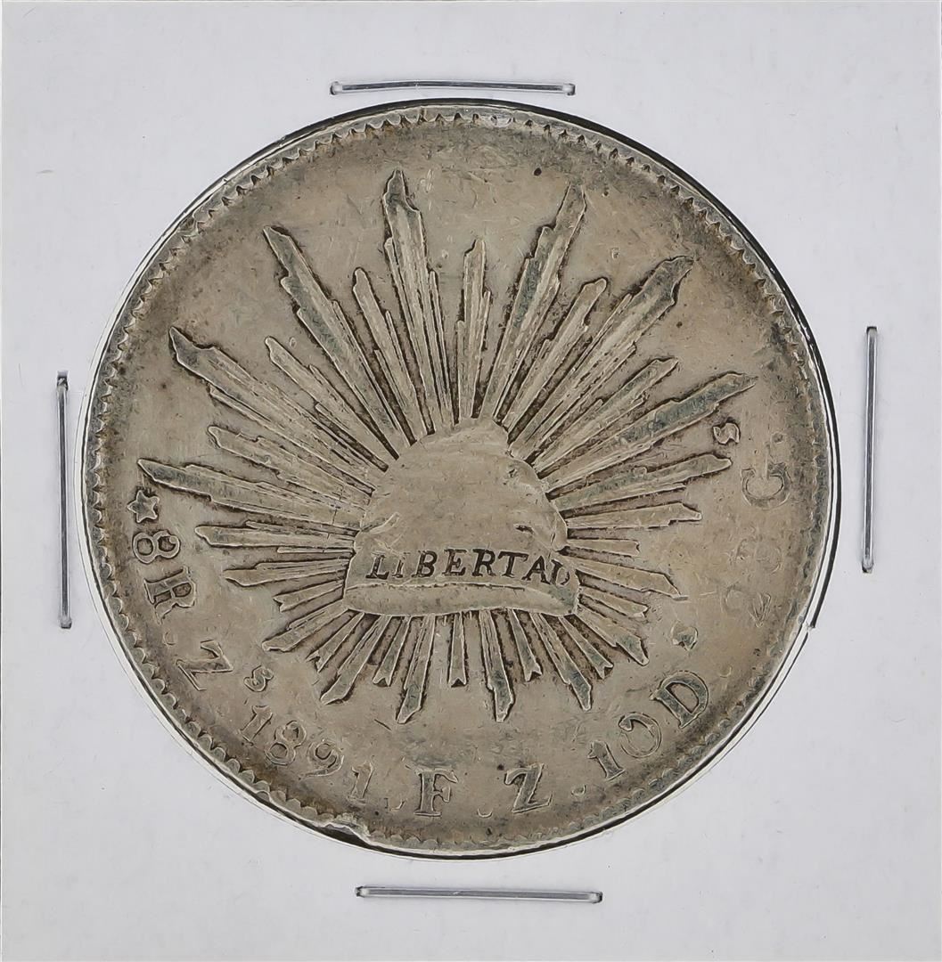 One 1891 ZS JS Mexico 8 Reales Silver Coin KM 377.13.