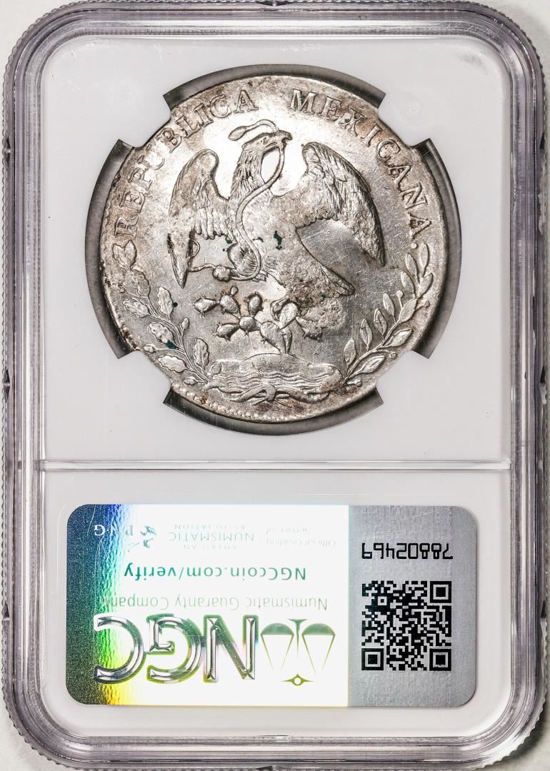 One 1891GO RS Mexico 8 Reales Silver Coin NGC Chopmarked. NGC Certified.