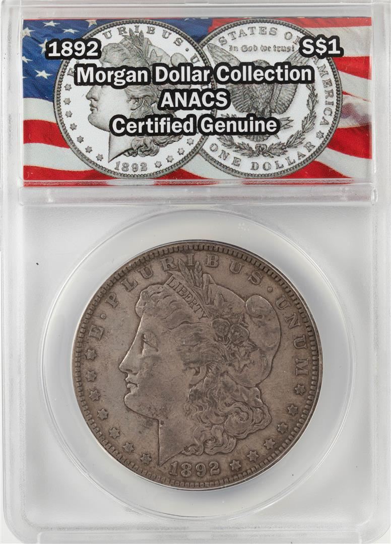One 1892 $1 Morgan Silver Dollar Coin ANACS Certified Genuine. ANACS Certified.