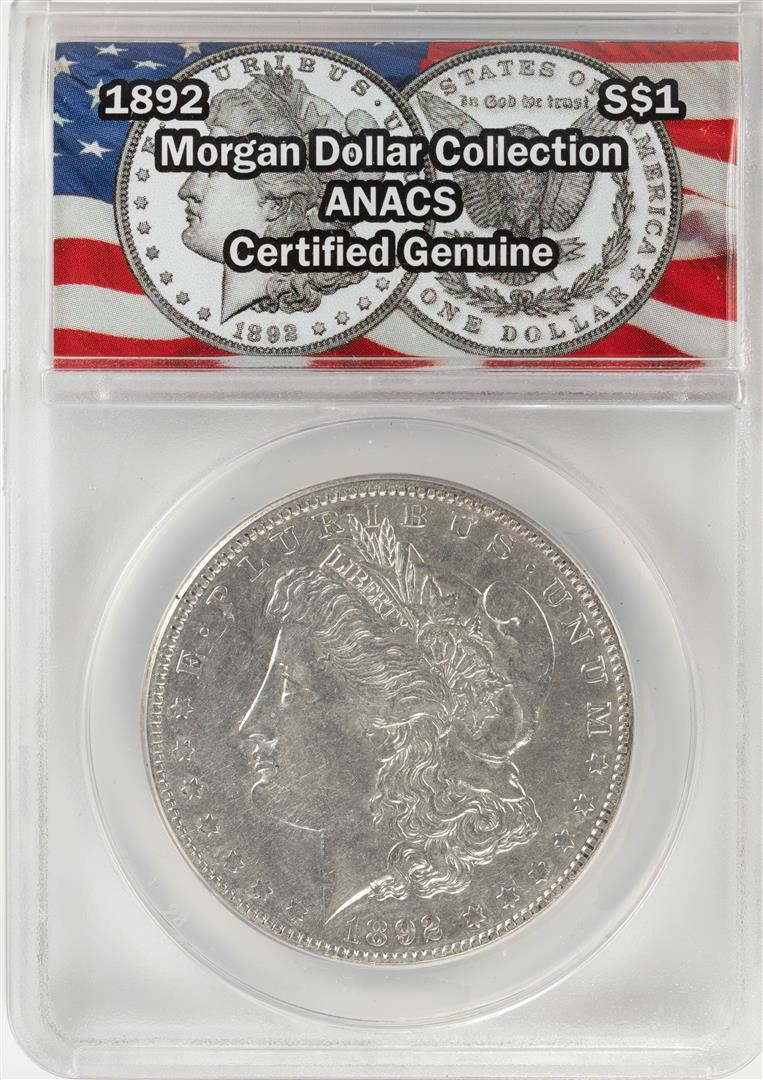 One 1892 $1 Morgan Silver Dollar Coin ANACS Certified Genuine. ANACS Certified.