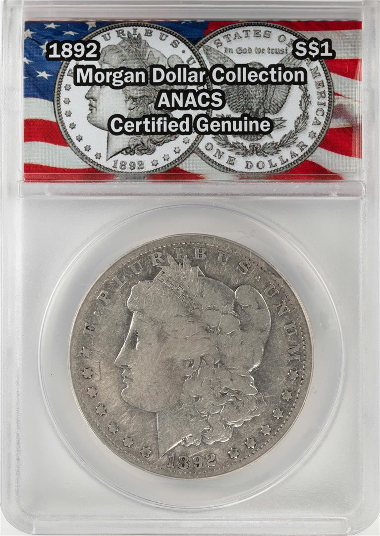 One 1892 $1 Morgan Silver Dollar Coin ANACS Certified Genuine. ANACS Certified.