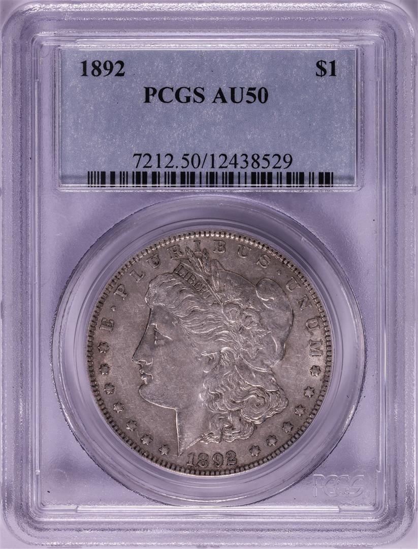 One 1892 $1 Morgan Silver Dollar Coin PCGS AU50. PCGS Graded.