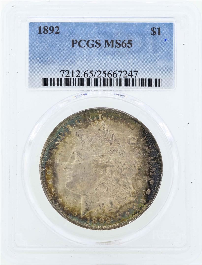 One 1892 $1 Morgan Silver Dollar Coin PCGS MS65. PCGS Graded.