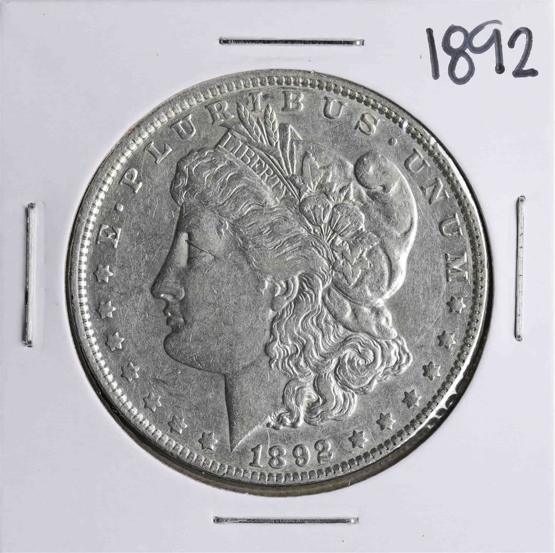 One 1892 $1 Morgan Silver Dollar Coin.