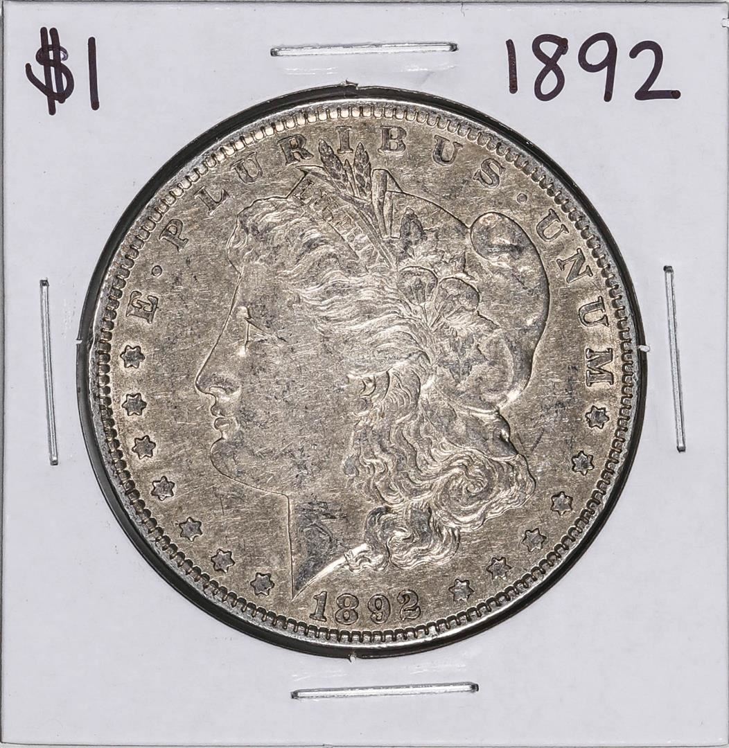 One 1892 $1 Morgan Silver Dollar Coin.