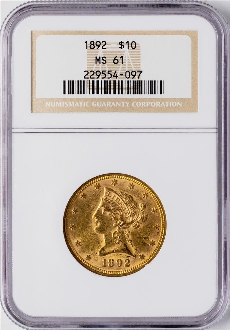 One 1892 $10 Liberty Head Eagle Gold Coin NGC MS61. NGC Certified.