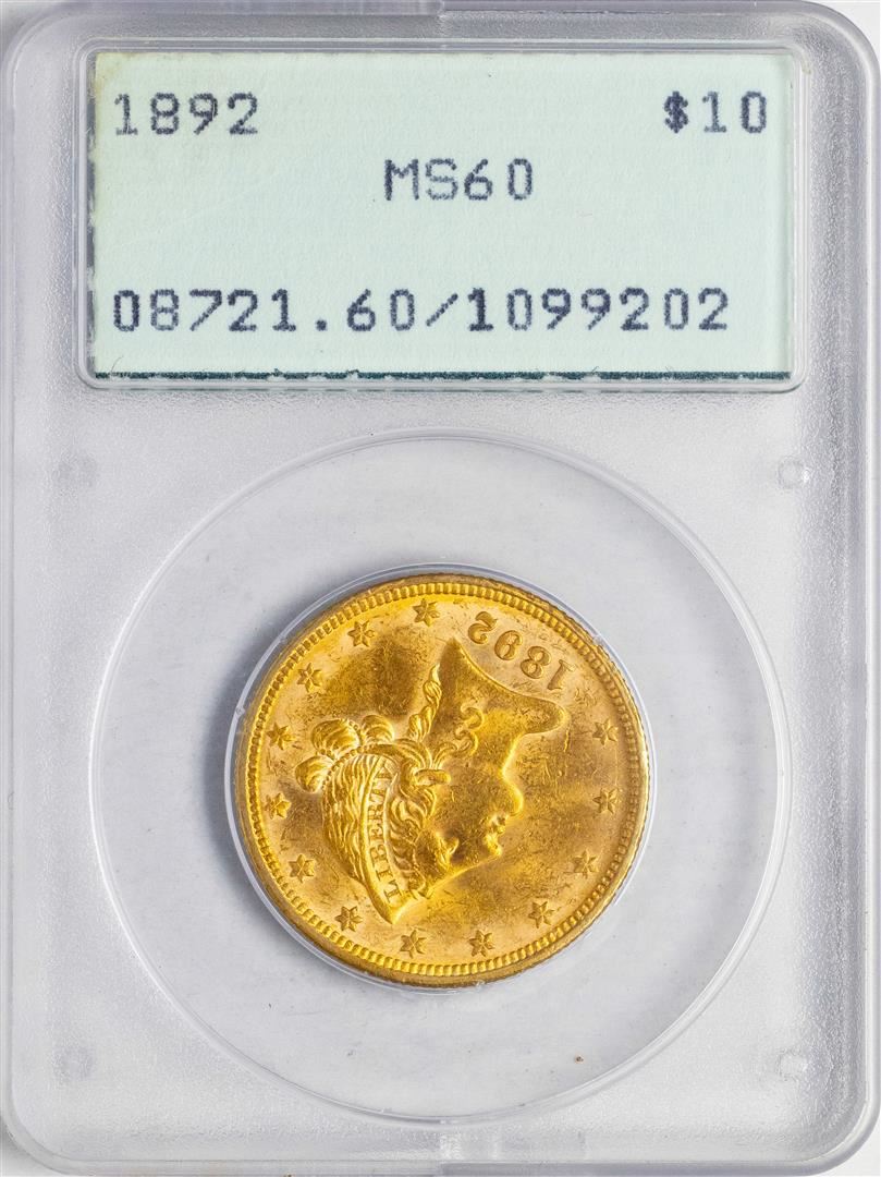 1892 $10 Liberty Head Eagle Gold Coin PCGS MS60 Old Green Rattler