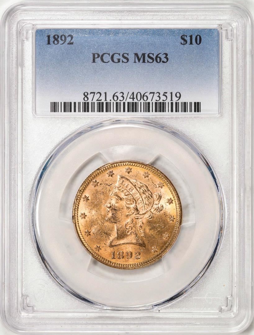 One 1892 $10 Liberty Head Eagle Gold Coin PCGS MS63. PCGS Graded.