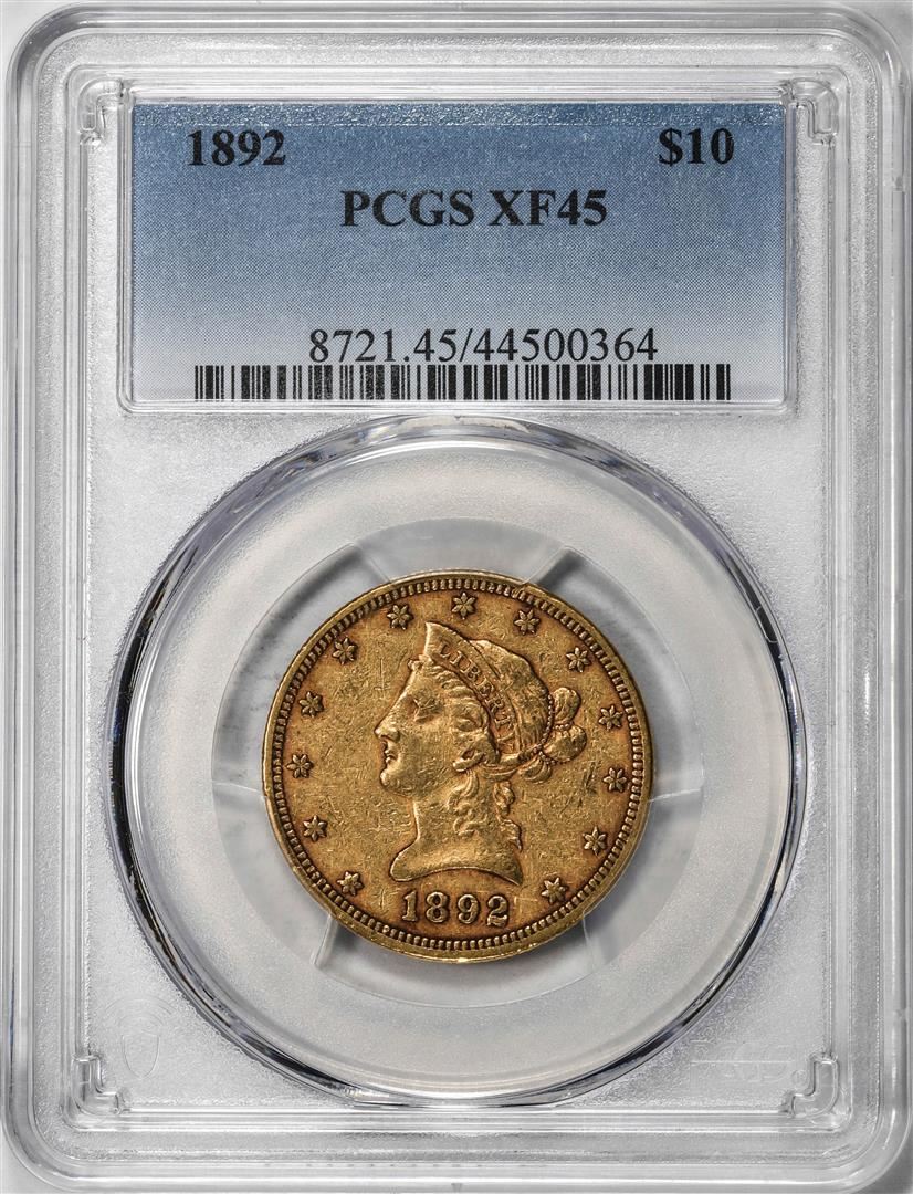 One 1892 $10 Liberty Head Eagle Gold Coin PCGS XF45. PCGS Graded.