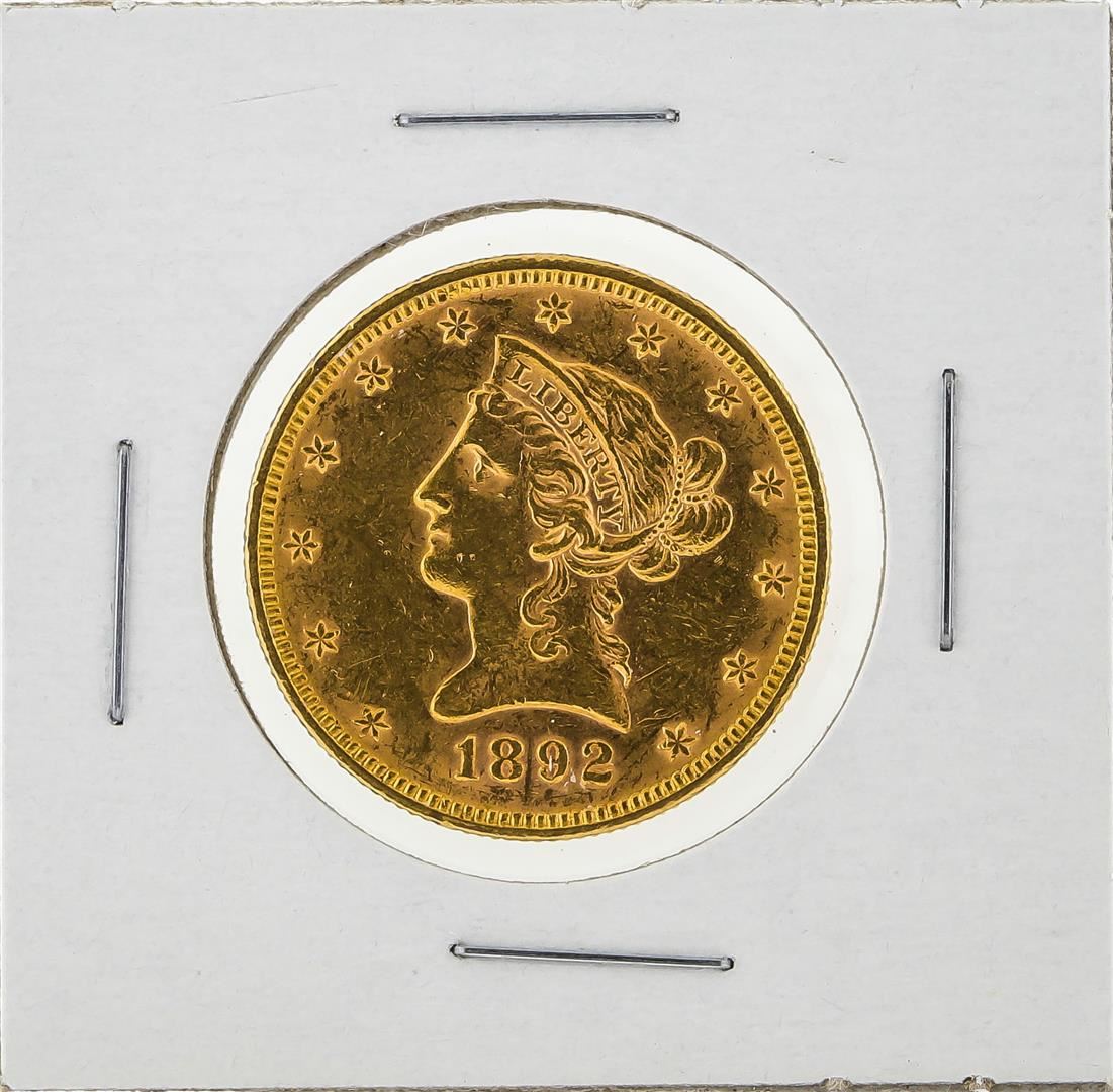 One 1892 $10 Liberty Head Eagle Gold Coin.