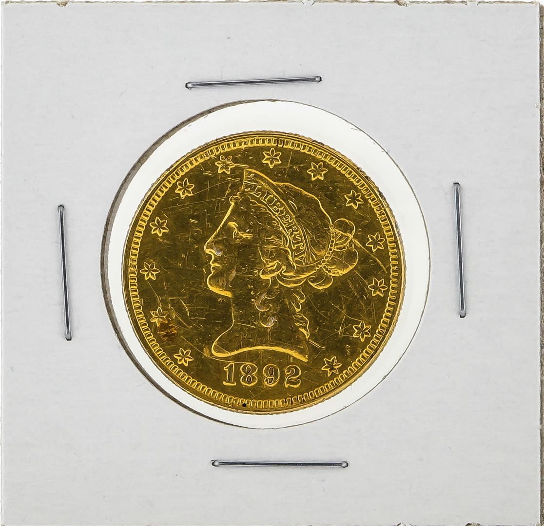One 1892 $10 Liberty Head Eagle Gold Coin.