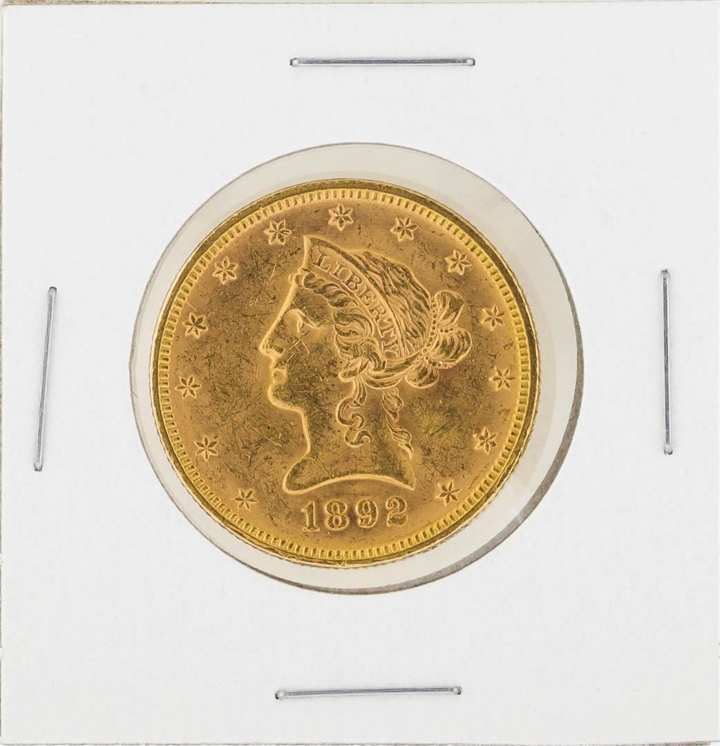 One 1892 $10 Liberty Head Eagle Gold Coin.