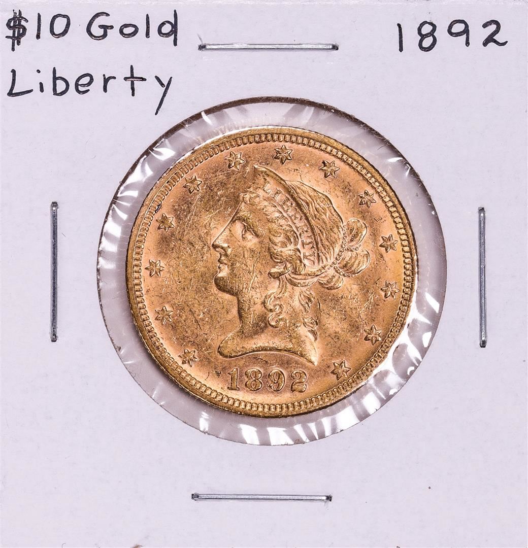 One 1892 $10 Liberty Head Eagle Gold Coin.