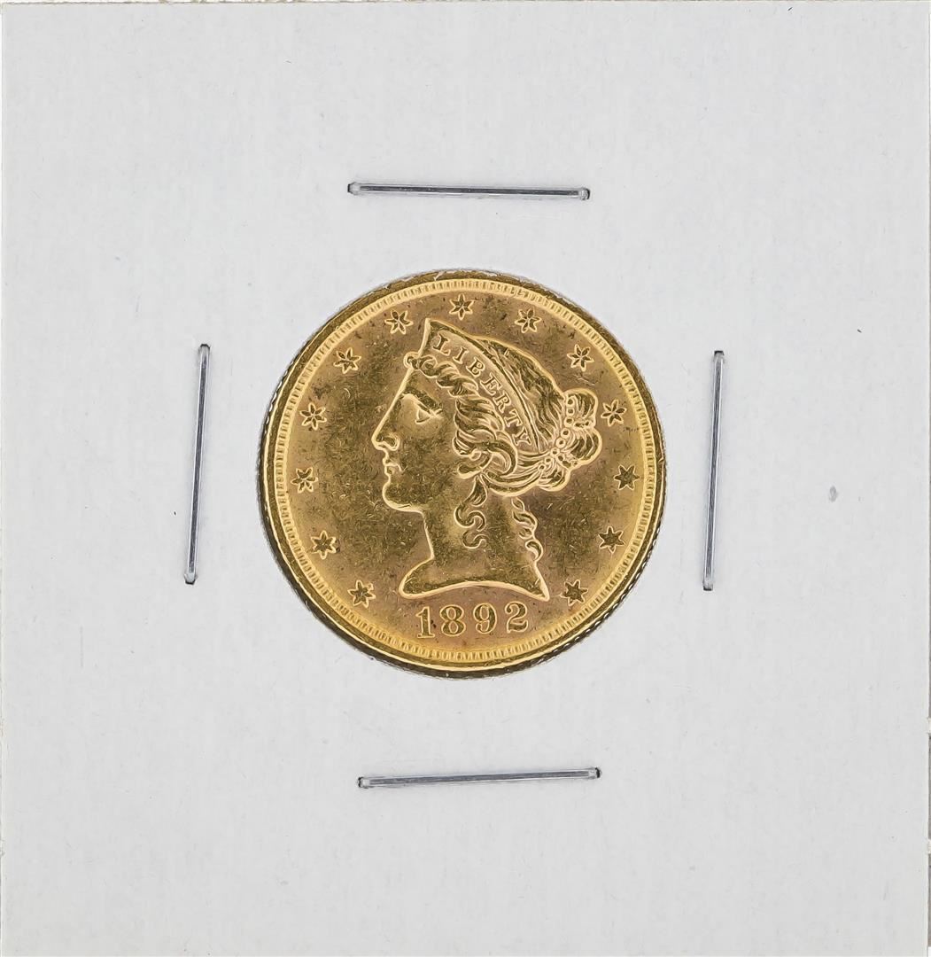 One 1892 $5 Liberty Head Half Eagle Gold Coin.