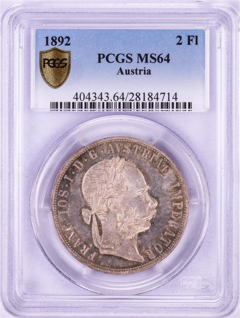 One 1892 Austria 2 Florin Silver Coin PCGS MS64. PCGS Graded.