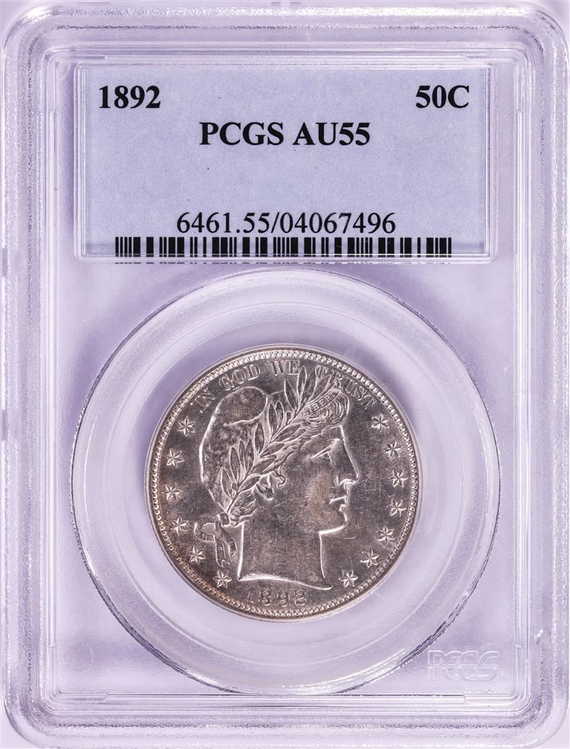 One 1892 Barber Half Dollar Coin PCGS AU55. PCGS Graded.